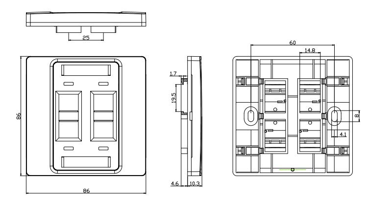 Bruken av en 4 -port -frontplate gir mulighet for en konsolidert og organisert tilnærming til å håndtere flere tilkoblinger på et bestemt sted, redusere kabelrot og forenkle installasjons- og vedlikeholdsprosessen. Det brukes ofte i bolig-, kommersielle og industrielle omgivelser der flere tilkoblinger må nås og administreres effektivt.